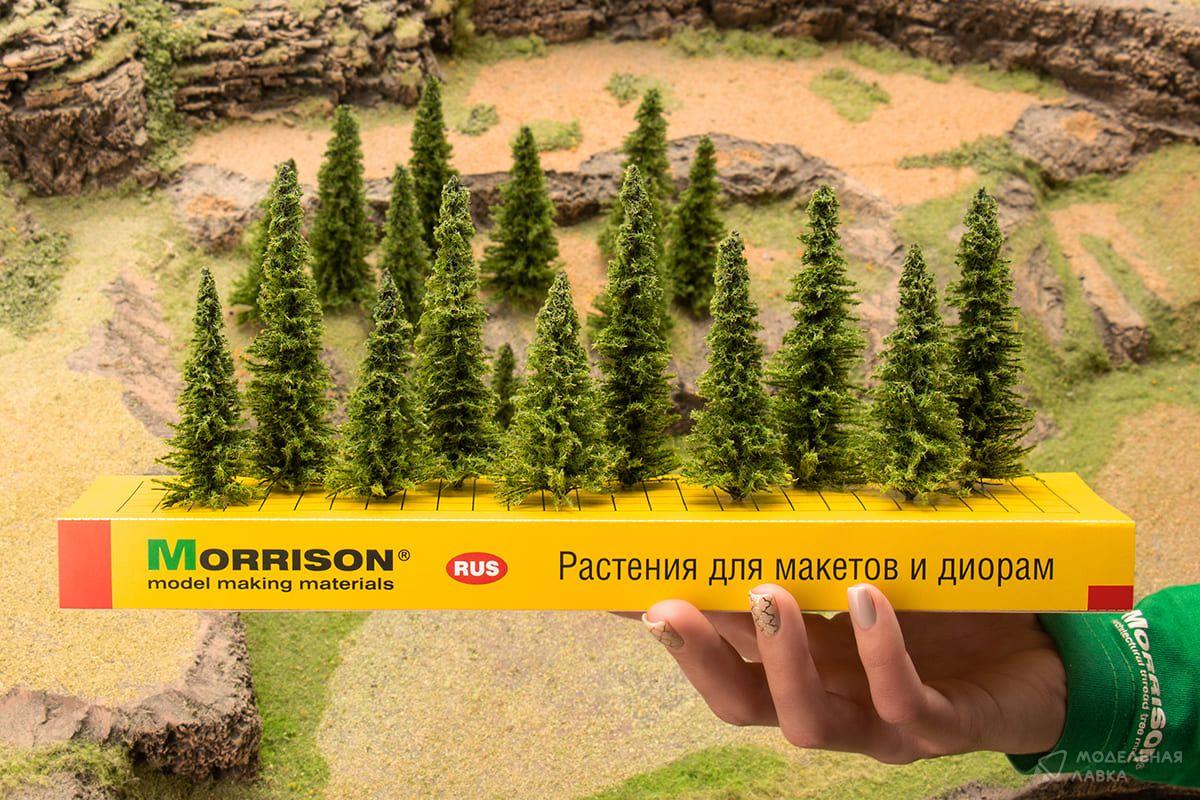 Применяя масштабные модели елей Morrison, Вы с легкостью изготовите на ландшафте Вашего макета или диорамы целые хвойные леса и воссоздадите живописные природные виды вдоль железной дороги с максимальной реалистичностью.