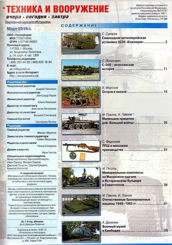 - "Техника и Вооружение вчера, сегодня, завтра" №3/2016