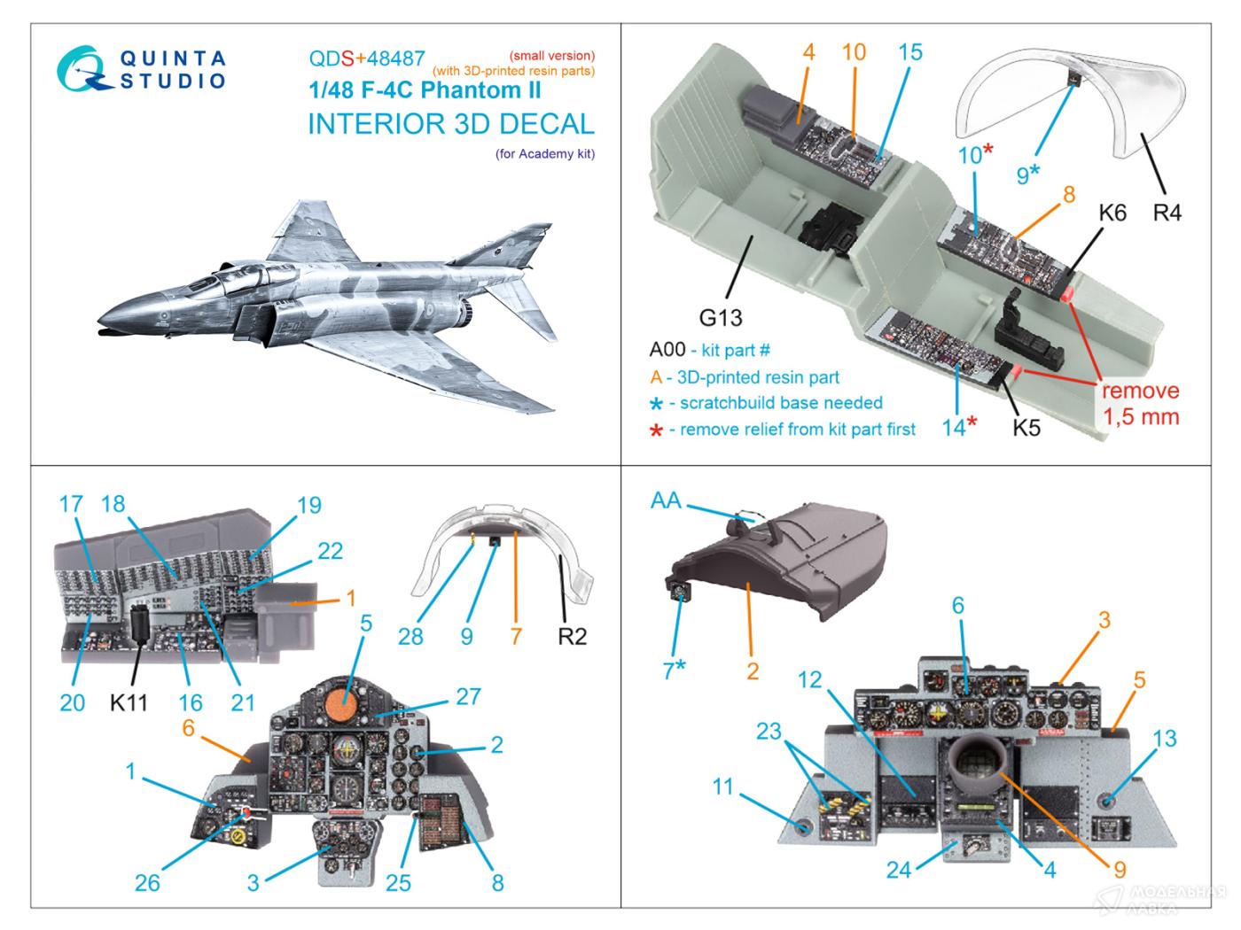 - 3D Декаль интерьера для F-4C Phantom II (Academy) (малая версия) (с 3D-печатными деталями)