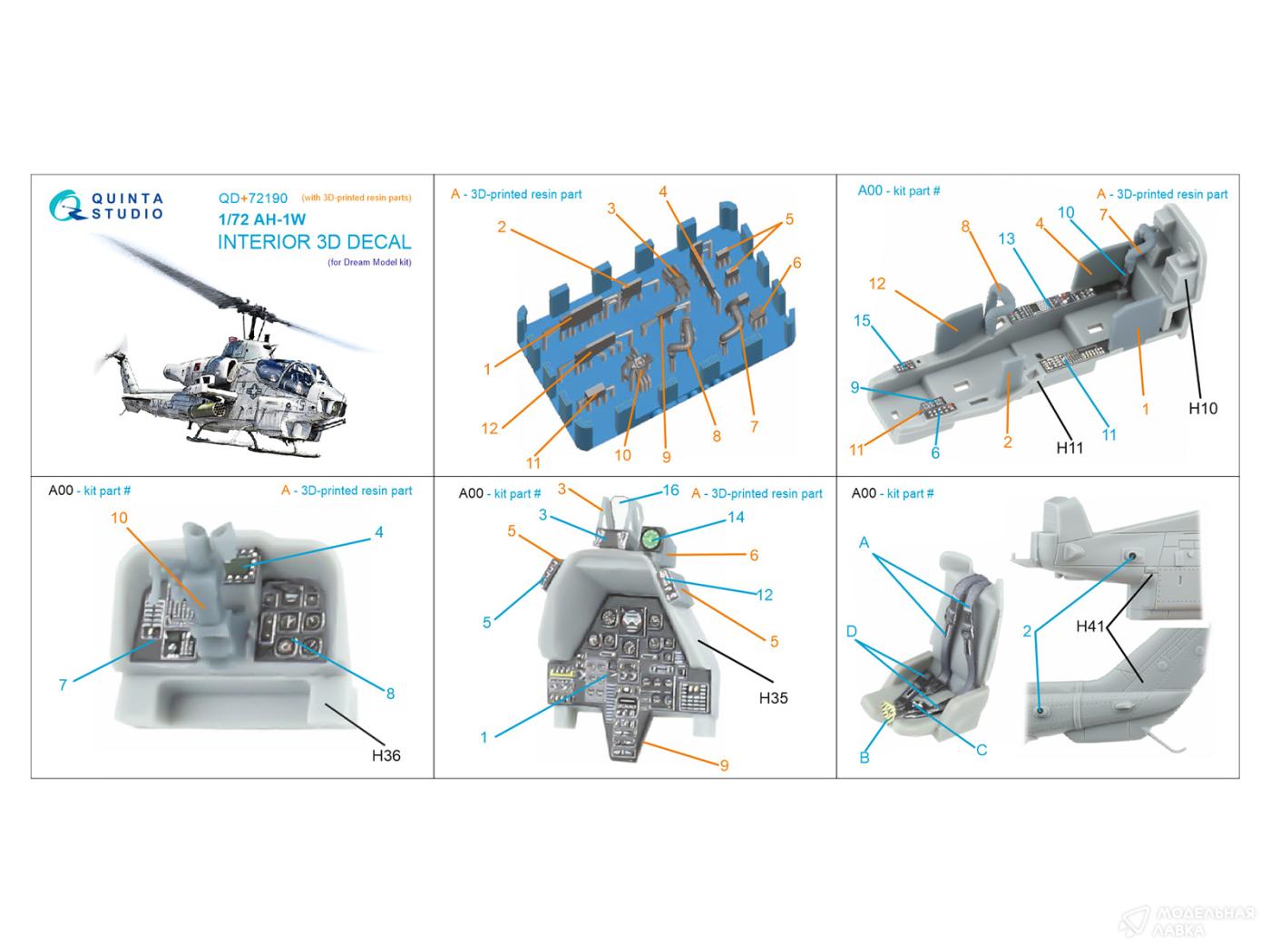 - 3D Декаль интерьера кабины AH-1W (Dream Model) (с 3D-печатными деталями)