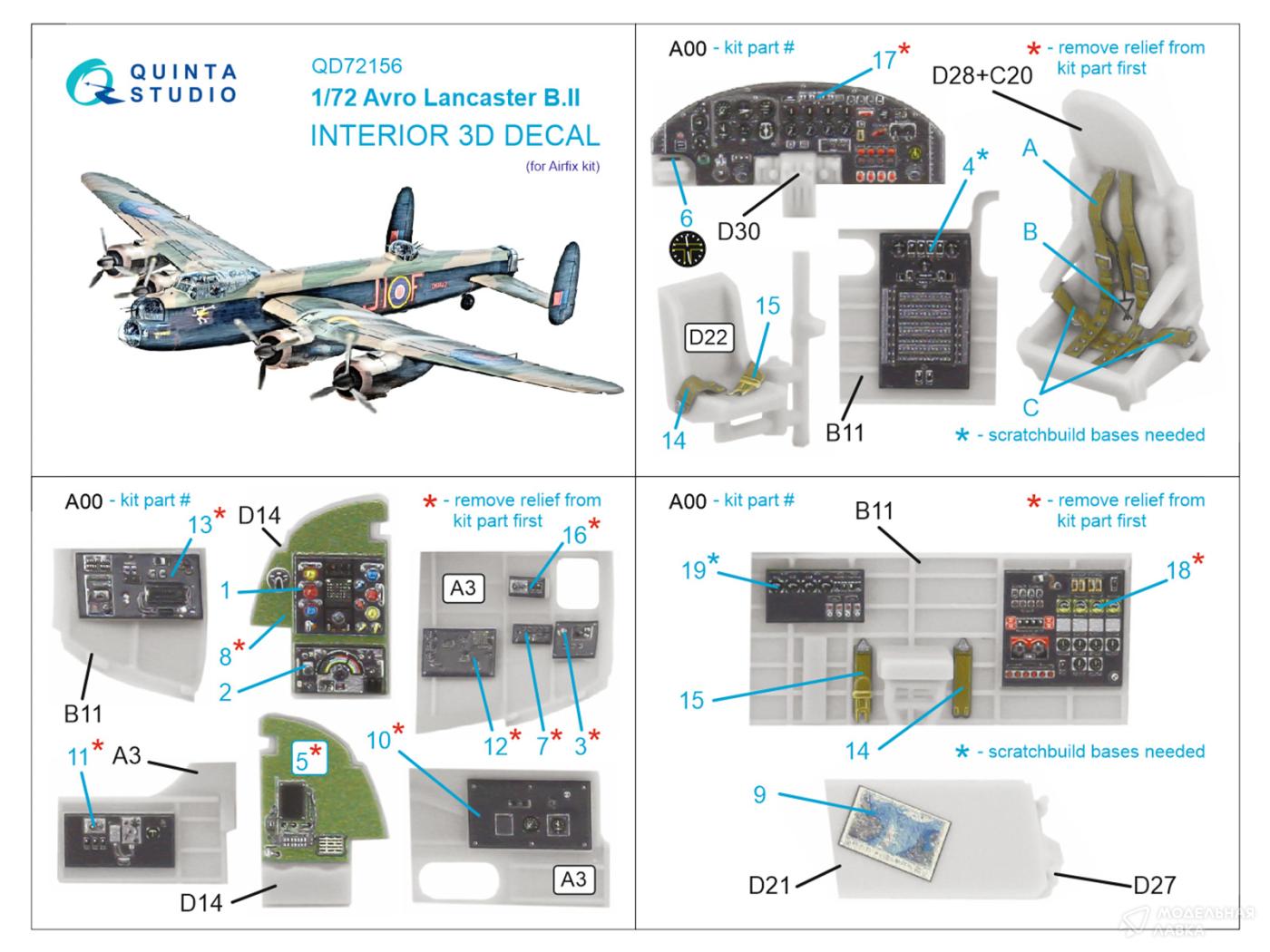 - 3D Декаль интерьера кабины Avro Lancaster B.II (Airfix)
