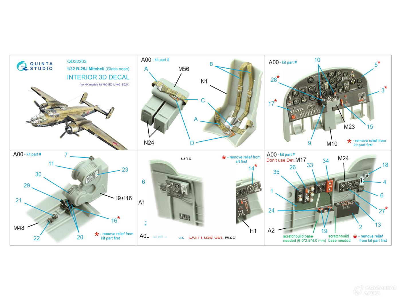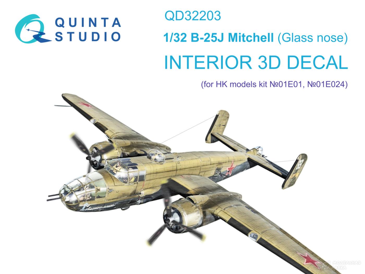 - 3D Декаль интерьера кабины B-25J Mitchell Glass nose (HK models)