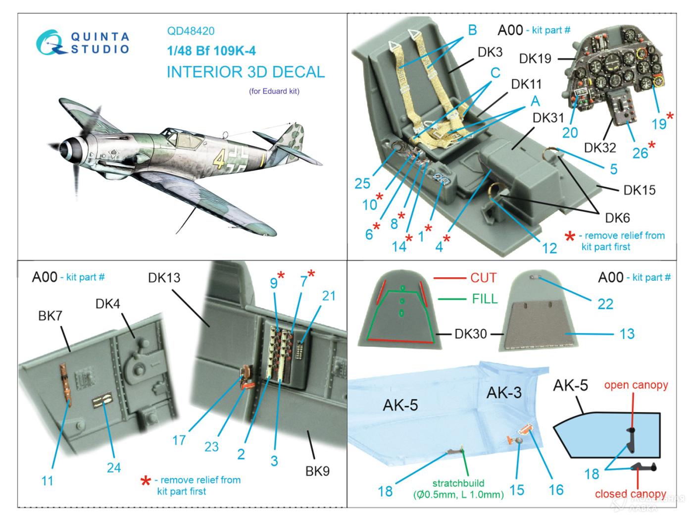- 3D Декаль интерьера кабины Bf 109K-4 (Eduard)