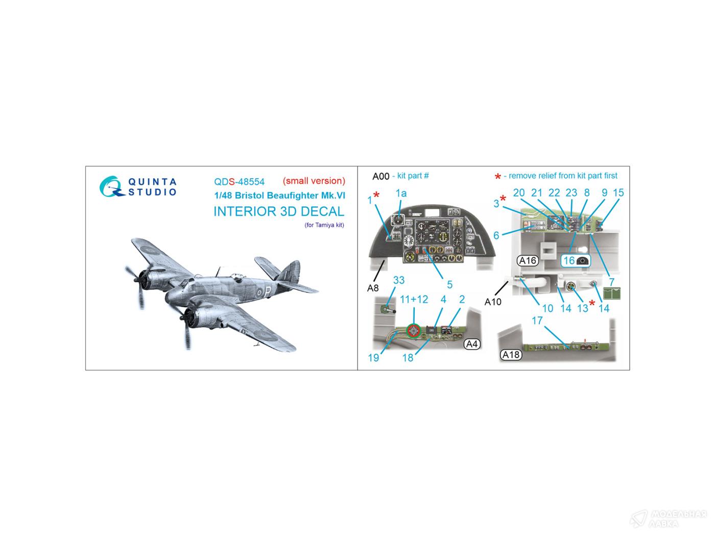 - 3D Декаль интерьера кабины Bristol Beaufighter Mk.VI (Tamiya) (малая версия)
