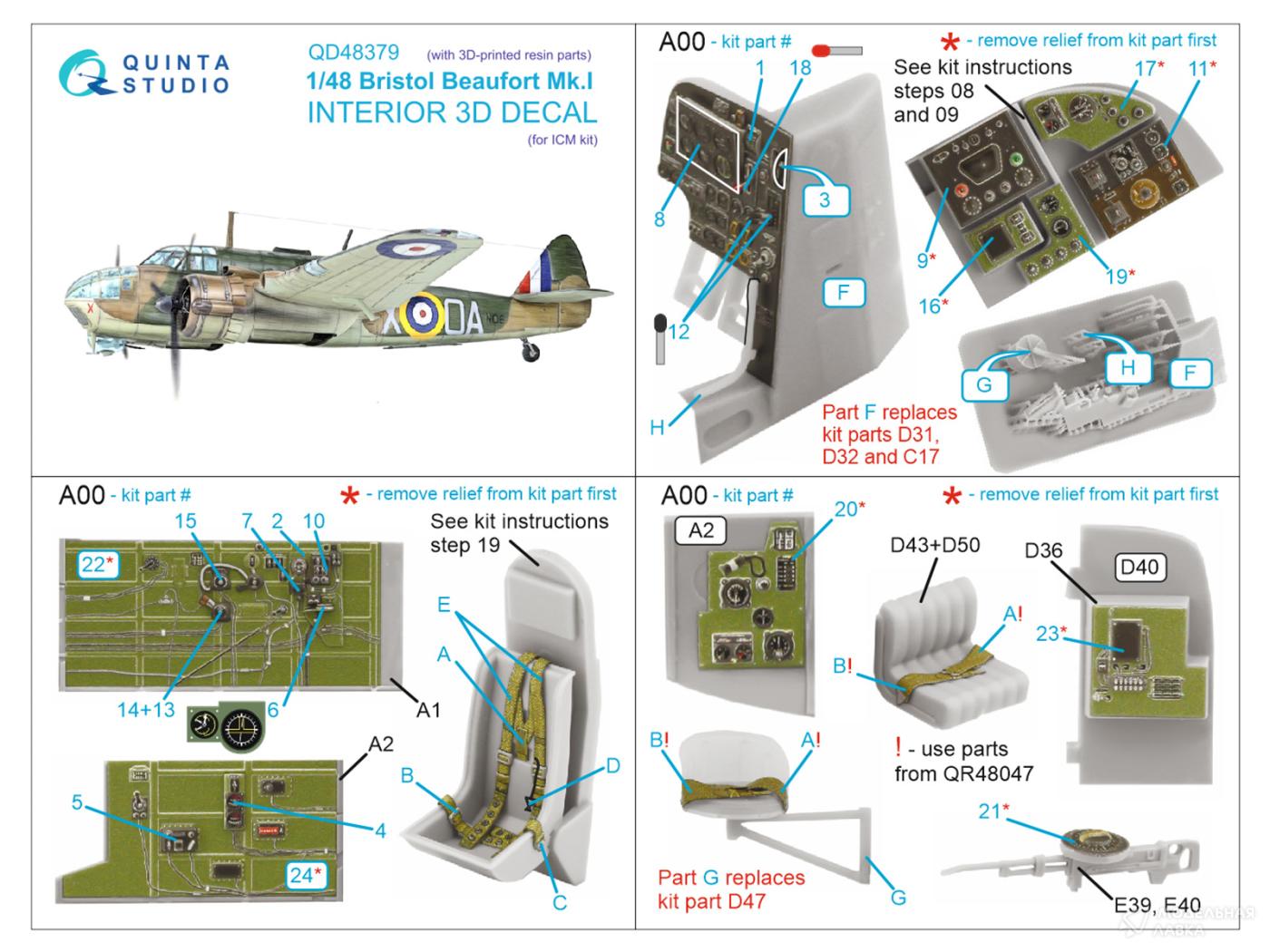- 3D Декаль интерьера кабины Bristol Beaufort Mk.I (ICM) (с 3D-печатными деталями)
