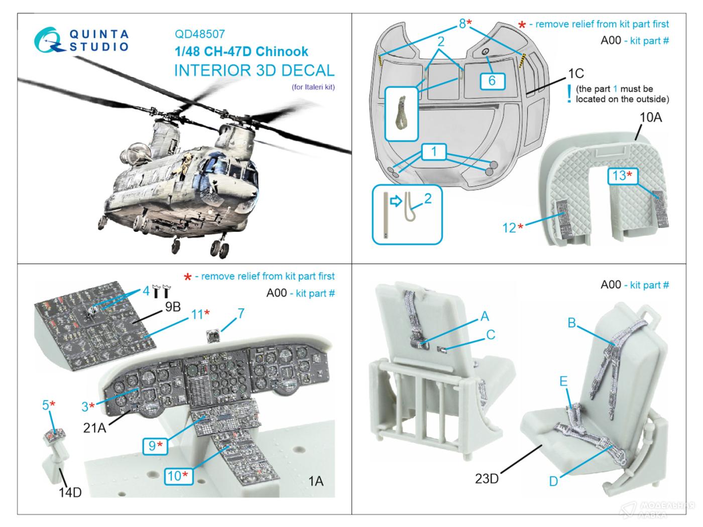 - 3D Декаль интерьера кабины CH-47D (Italeri)