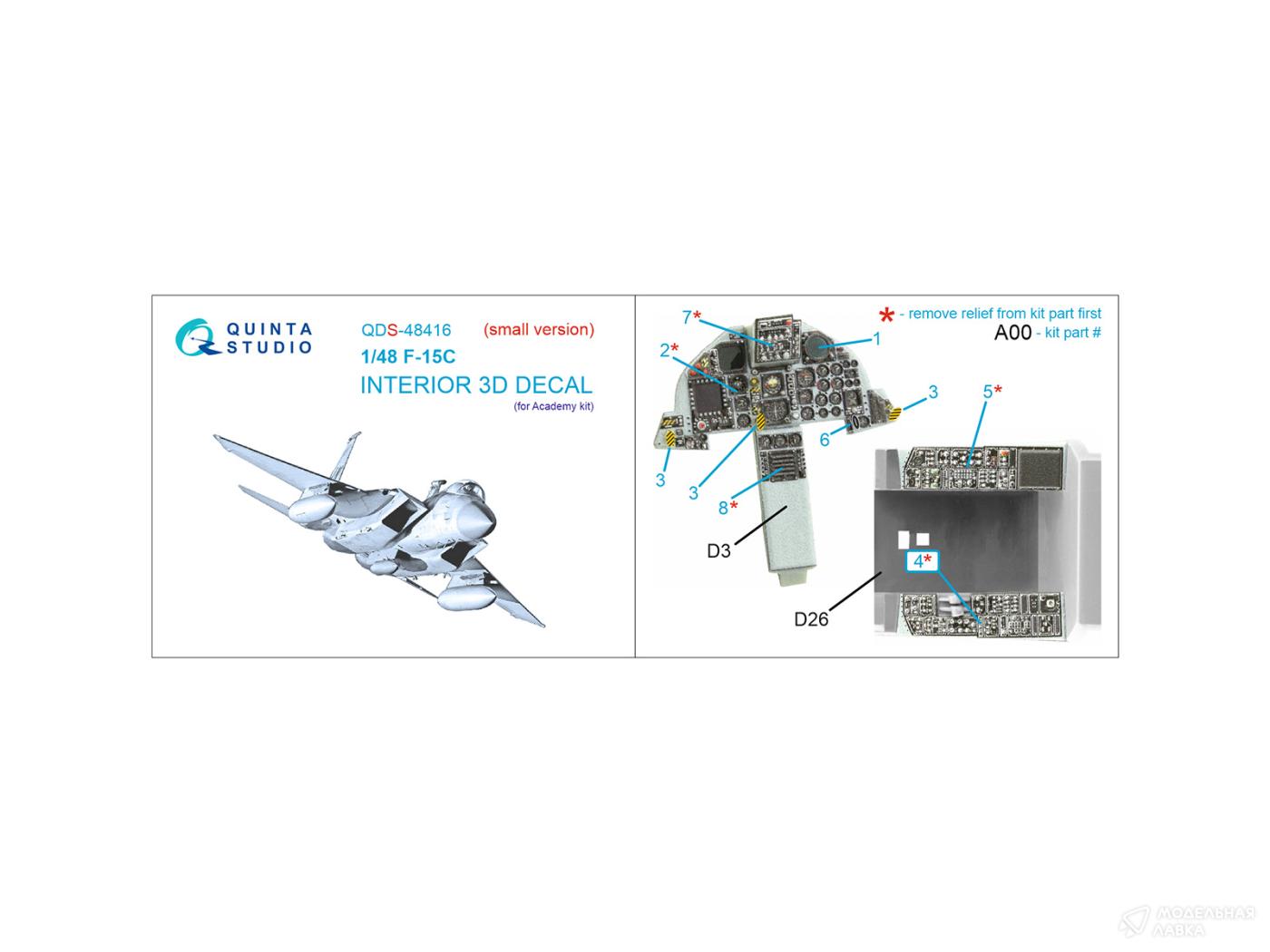 - 3D Декаль интерьера кабины F-15C (Academy) (Small version)