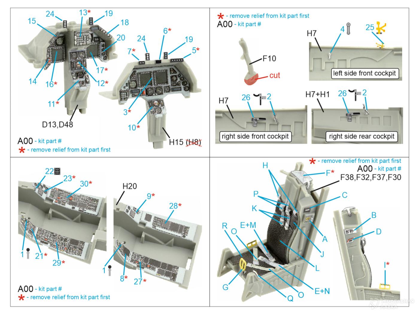 3D Декаль интерьера кабины F-16D block 30 (Kinetic 2022г. разработки)