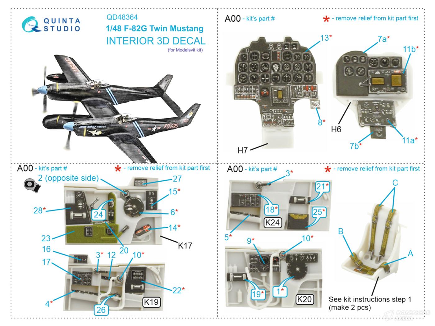 - 3D Декаль интерьера кабины F-82G Twin Mustang (Modelsvit)