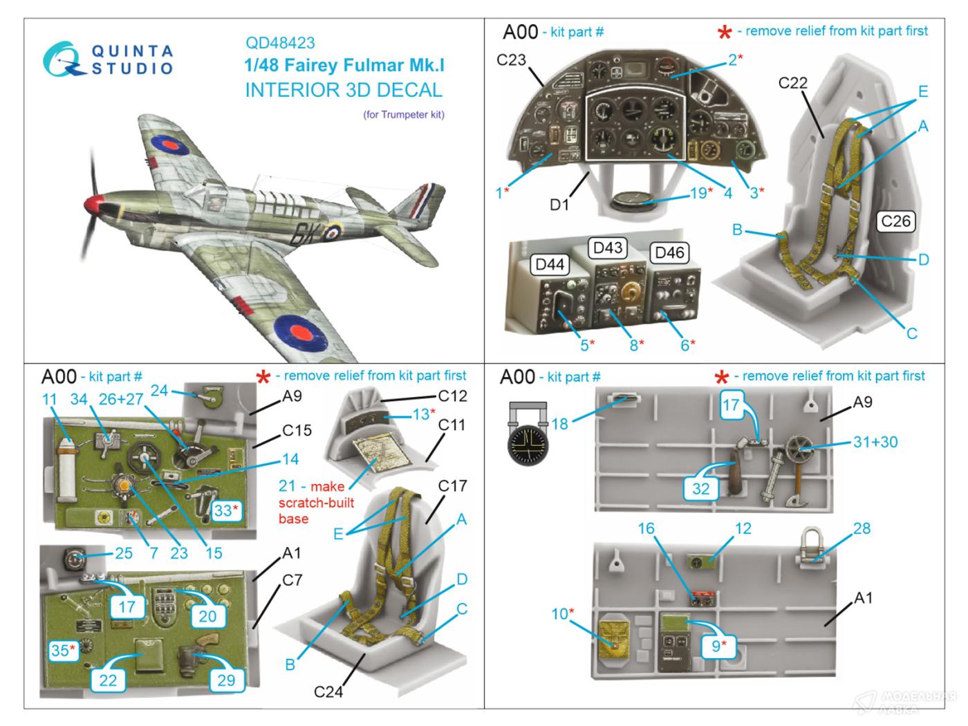 - 3D Декаль интерьера кабины Fairey Fulmar Mk.I (Trumpeter)