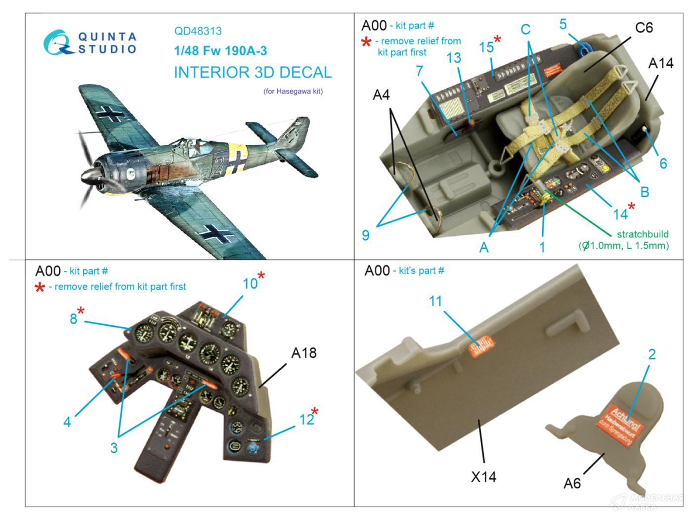 - 3D Декаль интерьера кабины Fw 190A-3 (Hasegawa)