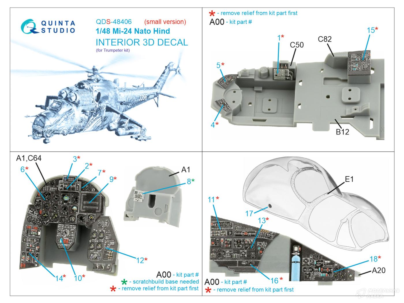 - 3D Декаль интерьера кабины Mi-24 Nato Hind (Trumpeter)(Малая версия)
