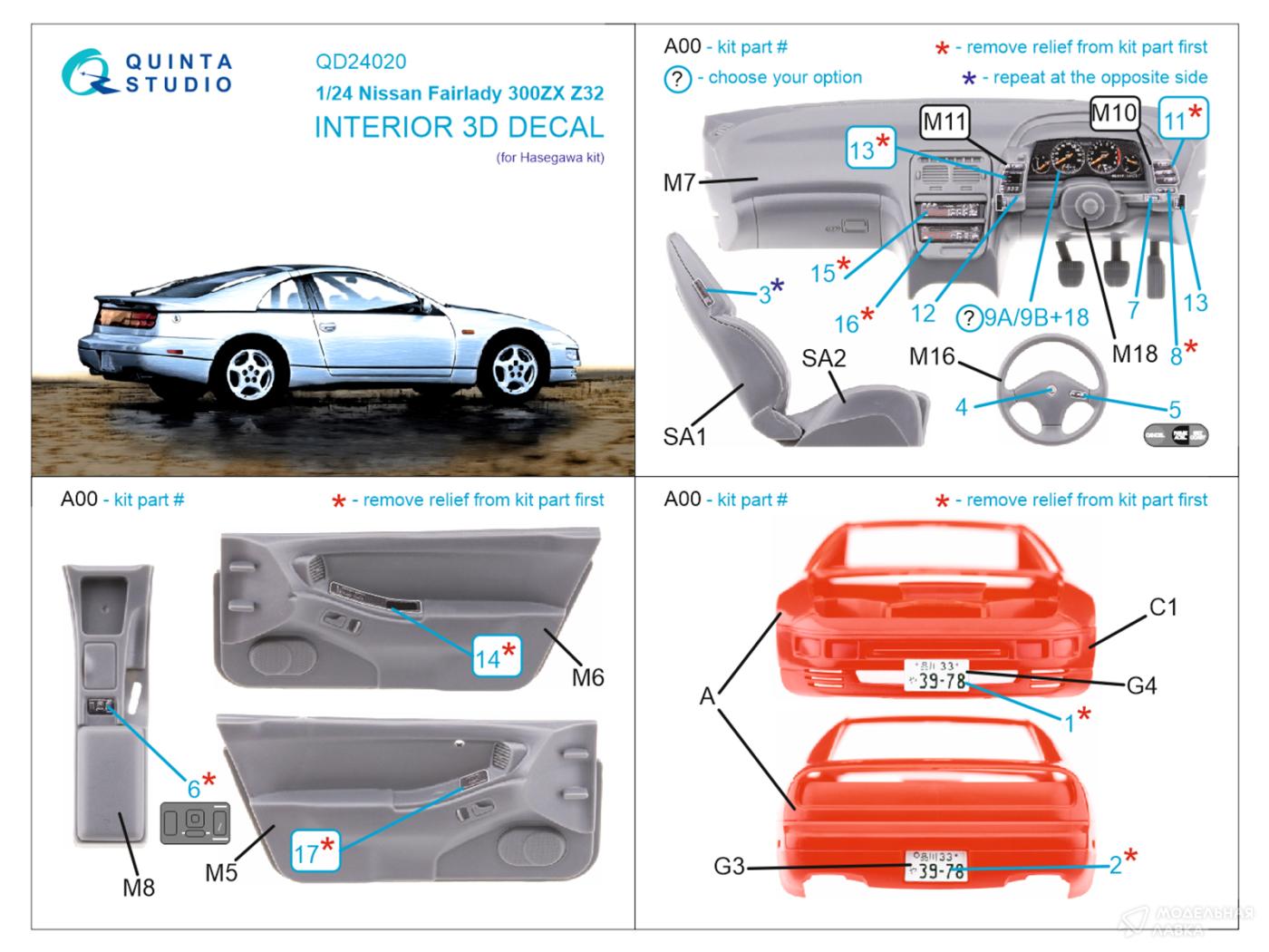 - 3D Декаль интерьера кабины Nissan Fairlady 300ZX Z32 (Hasegawa)
