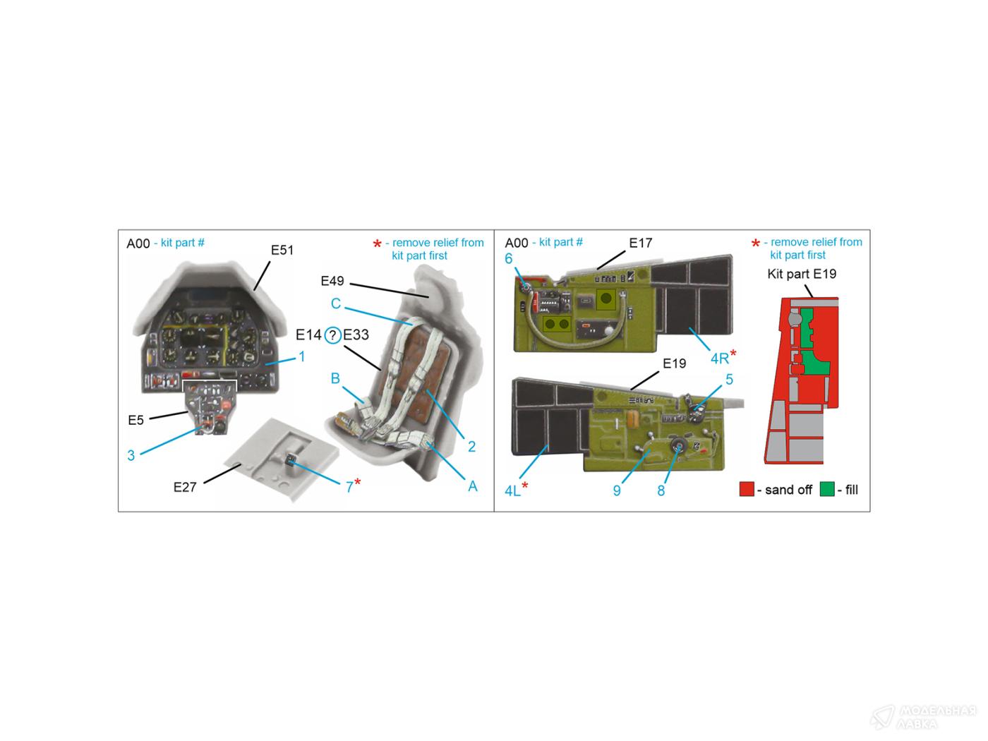 3D Декаль интерьера кабины P-51D Mustang Early (Eduard)