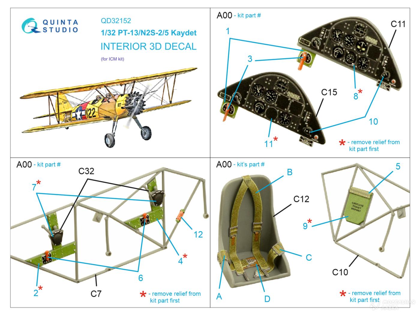 - 3D Декаль интерьера кабины PT-13/N2S-2/5 Kaydet (ICM)