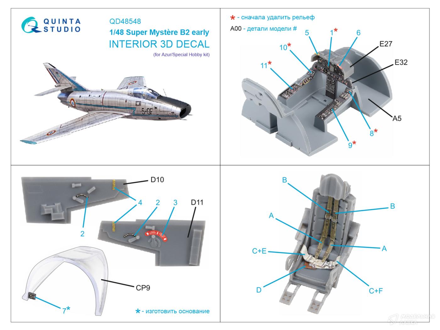 - 3D Декаль интерьера кабины Super Mystere B2 Early (Azur/Special Hobby)