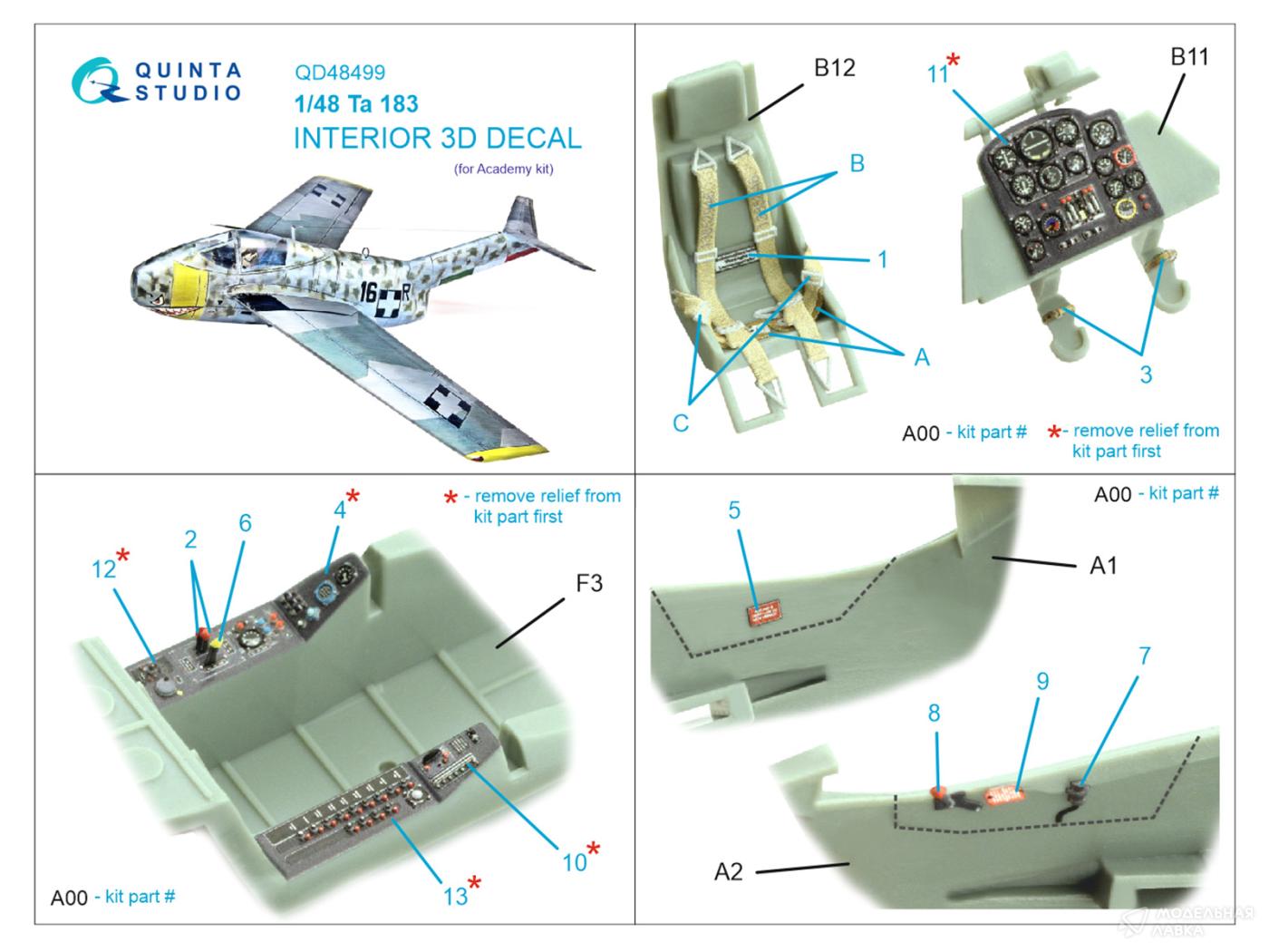 3D Декаль интерьера кабины Ta 183 (Academy)
