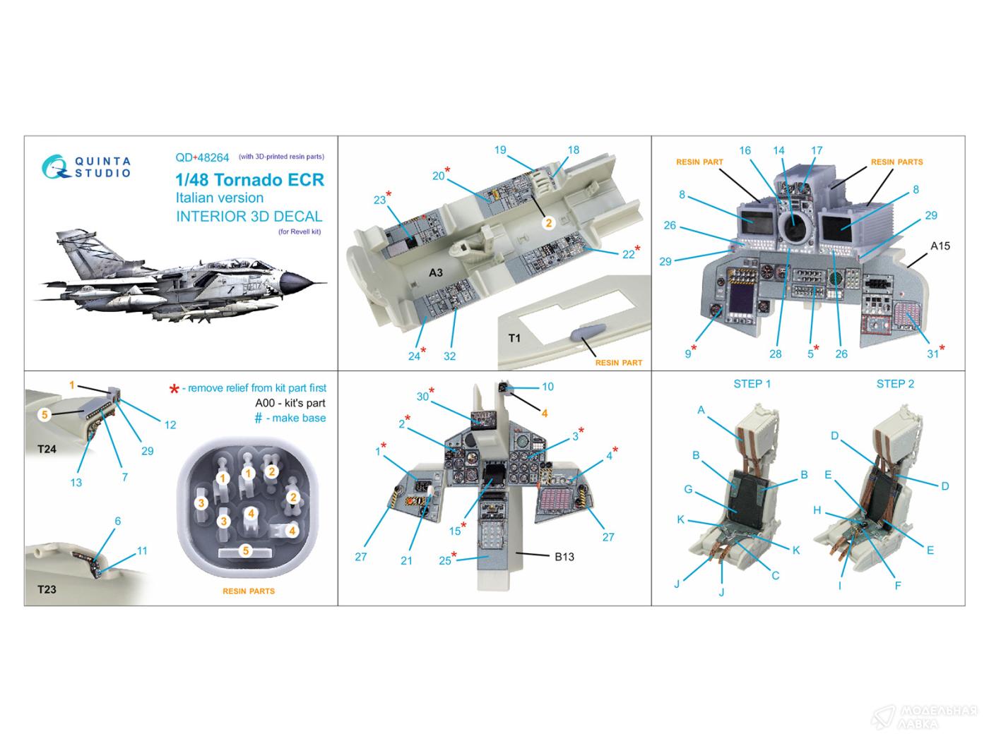 - 3D Декаль интерьера кабины Tornado ECR Italian (Revell) (с 3D-печатными деталями)