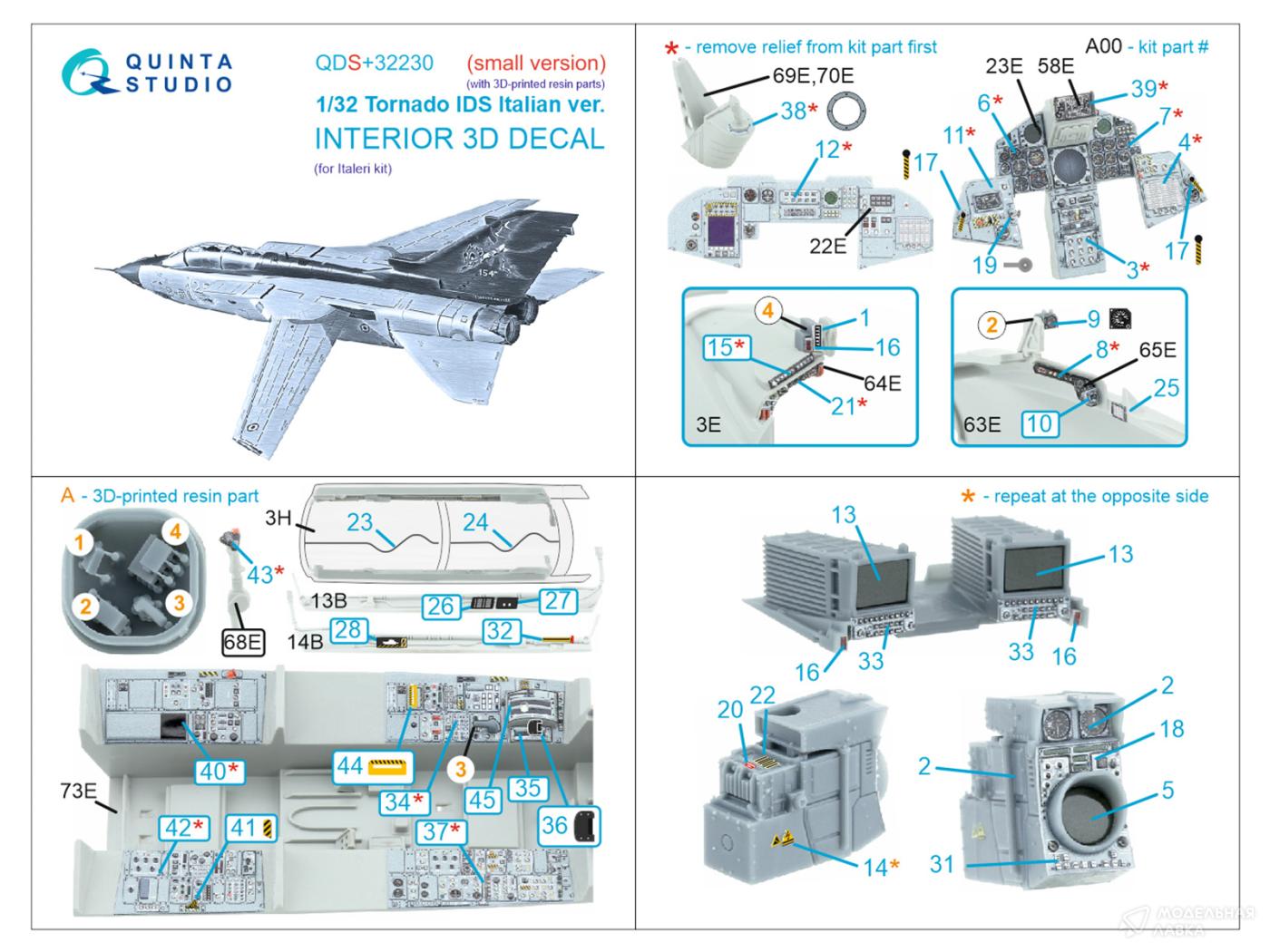 - 3D Декаль интерьера кабины Tornado IDS Italian (Italeri) (Малая версия) (с 3D-печатными деталями)