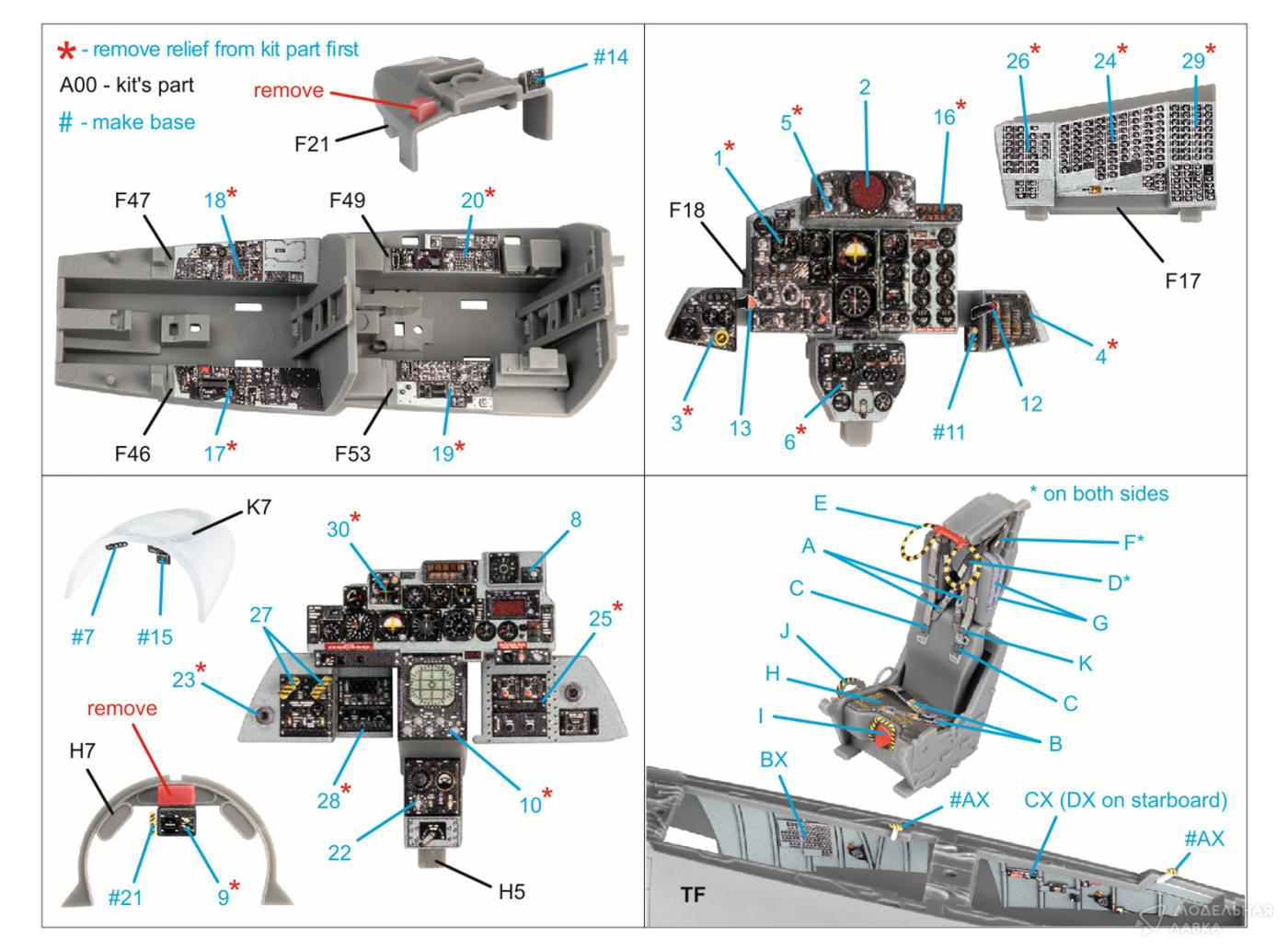 Декаль интерьера кабины A-1H (для модели Tamiya)