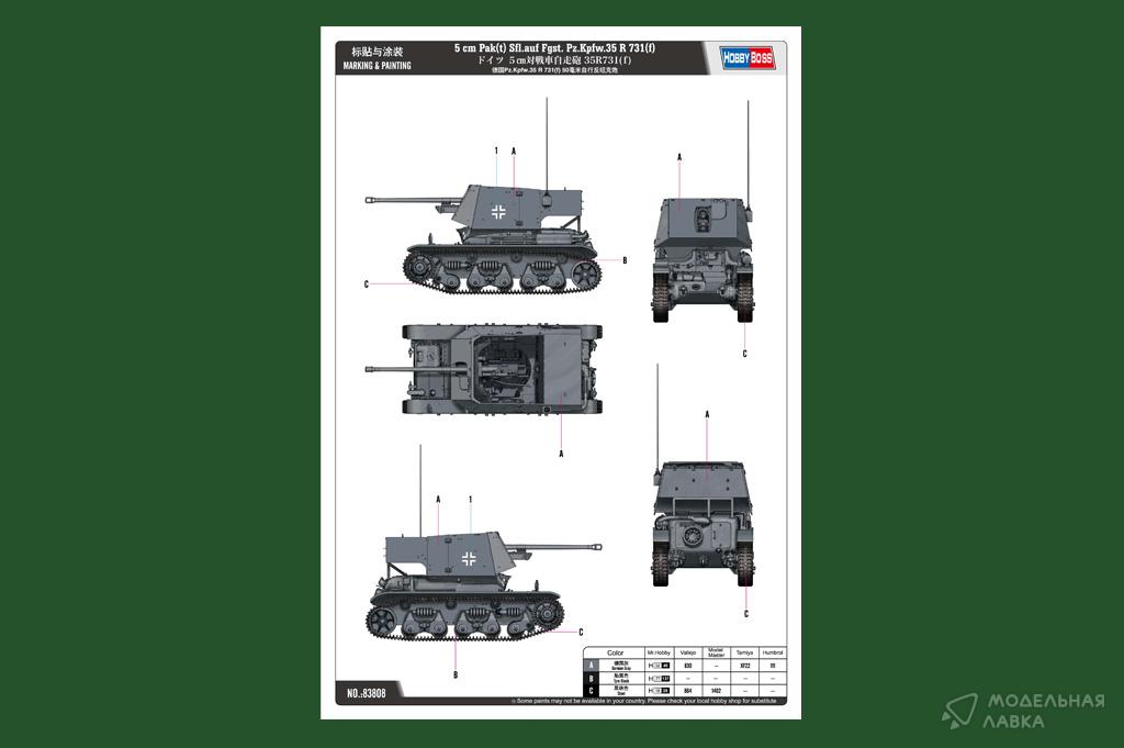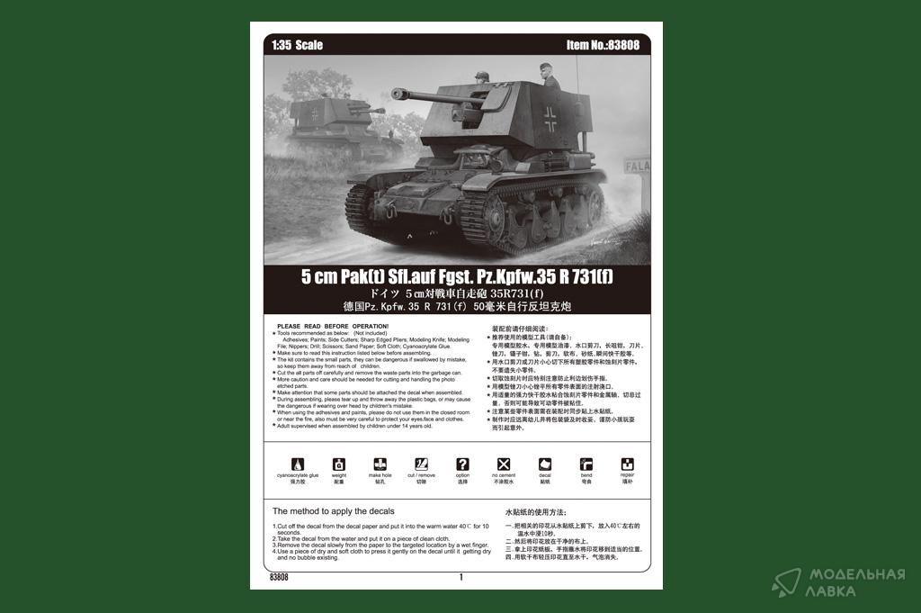 - Сборная модель 5 cm Pak(t) Sfl.auf Fgst. Pz.Kpfw.35 R 731(f)