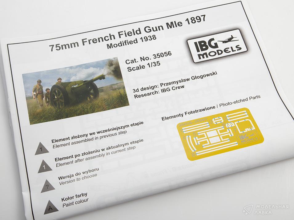 - Сборная модель 75-мм французское полевое орудие Mle 1897 Mod. 1938 г.