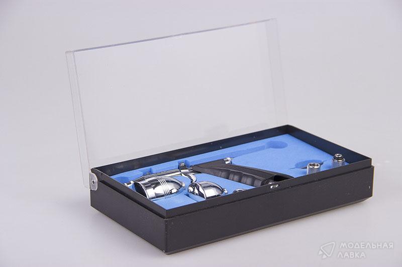 Комплект поставки: аэрограф, емкости под краску (1 шт. х 2 мл, 1 шт. х 5 мл, 1 шт. х 13 мл), ключ, инструкция, коробка.