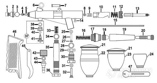 Аэрограф пистолетного типа широкого спектра применения.