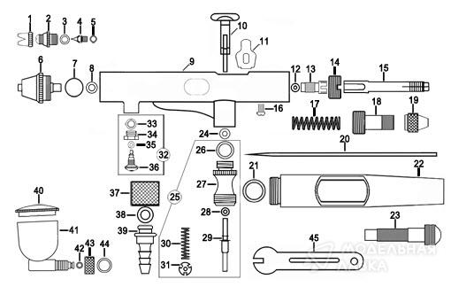 Комплект поставки: аэрограф, емкость под краску (1 шт. х 7 мл), пипетка, ключ, инструкция, коробка.