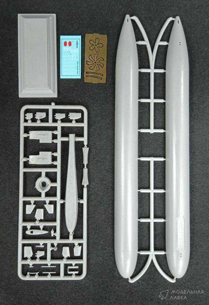 Состоит из набора пластиковых элементов для сборки модели подводной лодки в масштабе 1/350.