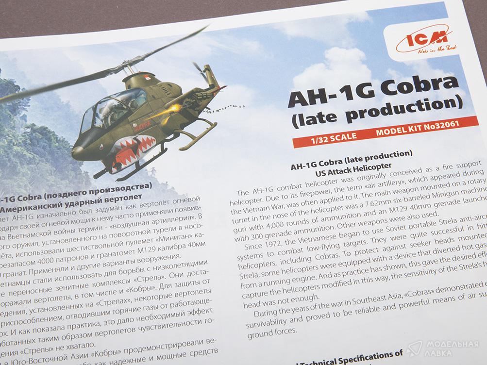 Сборная модель американский боевой вертолет AH-1G Cobra (позднее производство)
