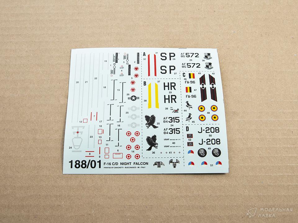Комплект пластиковых деталей для сборки масштабной модели американского истребителя F-16 Fighting Falcon в масштабе 1:72.
