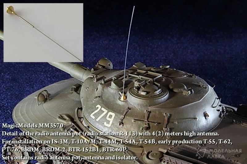 - Антенный ввод и 4-х (2-х) метровая антенна для БТТ, оснащенной радиостанциями Р-113. Для установки на модели Советских танков и БТР 1950-60 годов