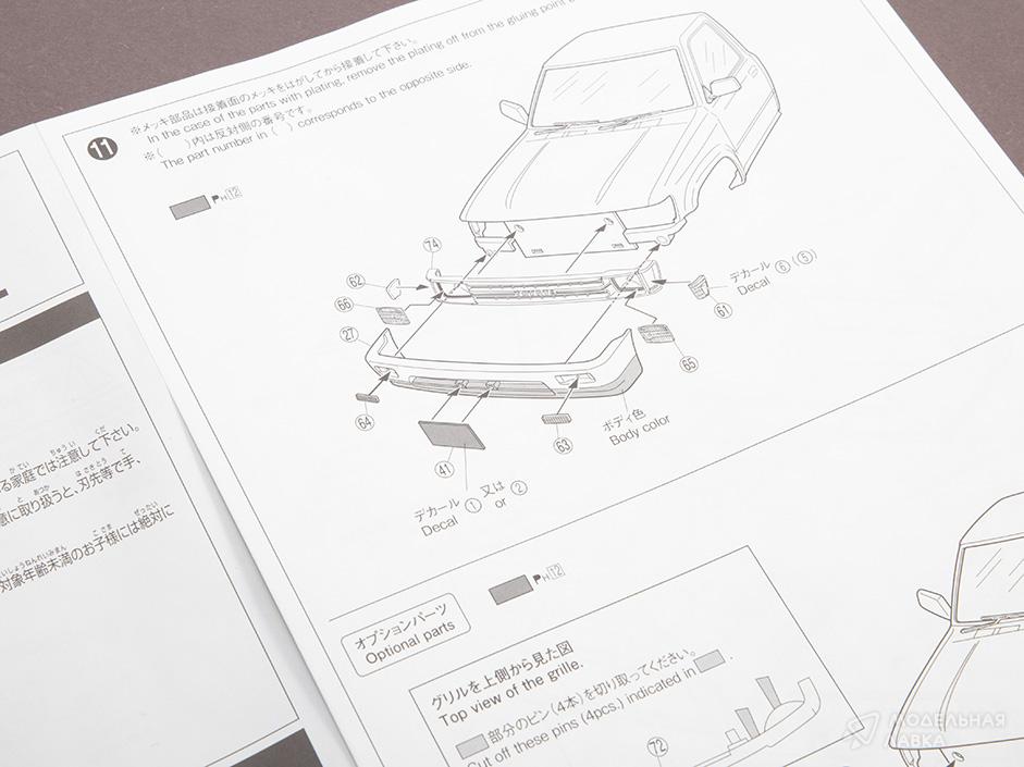 В набор входят литники с деталями для сборки одной модели, декали для нанесения на кузов, иллюстрированная инструкция на английском и японском языках.
