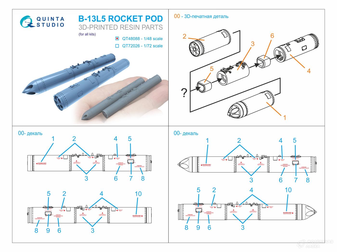 - Блоки неуправляемых ракет Б-13Л5, 2 шт. (для всех моделей)