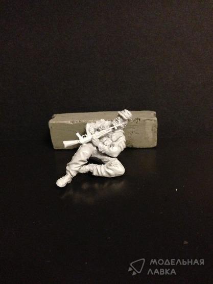Представленный боец меняющий рожок в автомате, состоит из нескольких частей, для самостоятельной сборки и покраски.