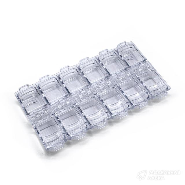 - Бокс для хранения прямоугольный 12 ячеек, 130х65мм (Прозрачный)