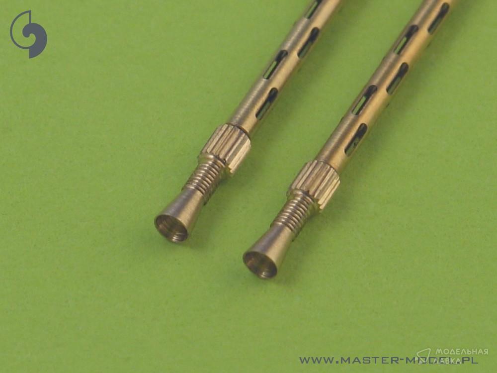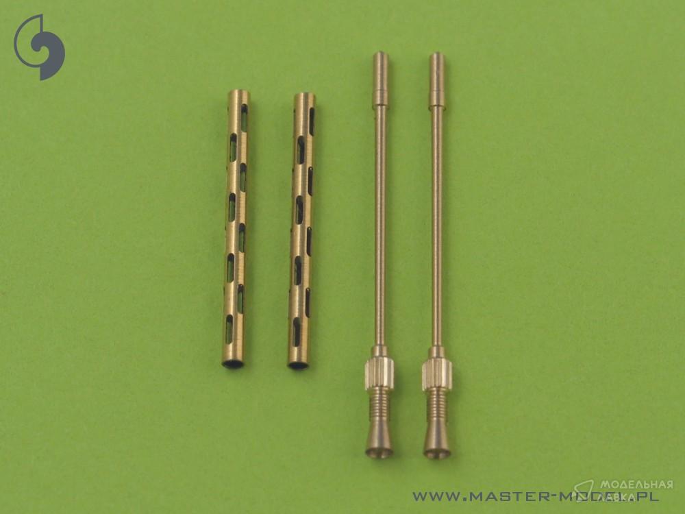В набор входят два точеных латунных ствола с прорезью рубашки охлаждения. Его очень просто использовать в Вашей модели, что делает ее предельно реалистичной. Просто отрежьте оригинальный пластиковый ствол, просверлите отверстие в оставшихся пластиковых деталях и вставьте металлический ствол, используя цианоакрилатный клей.