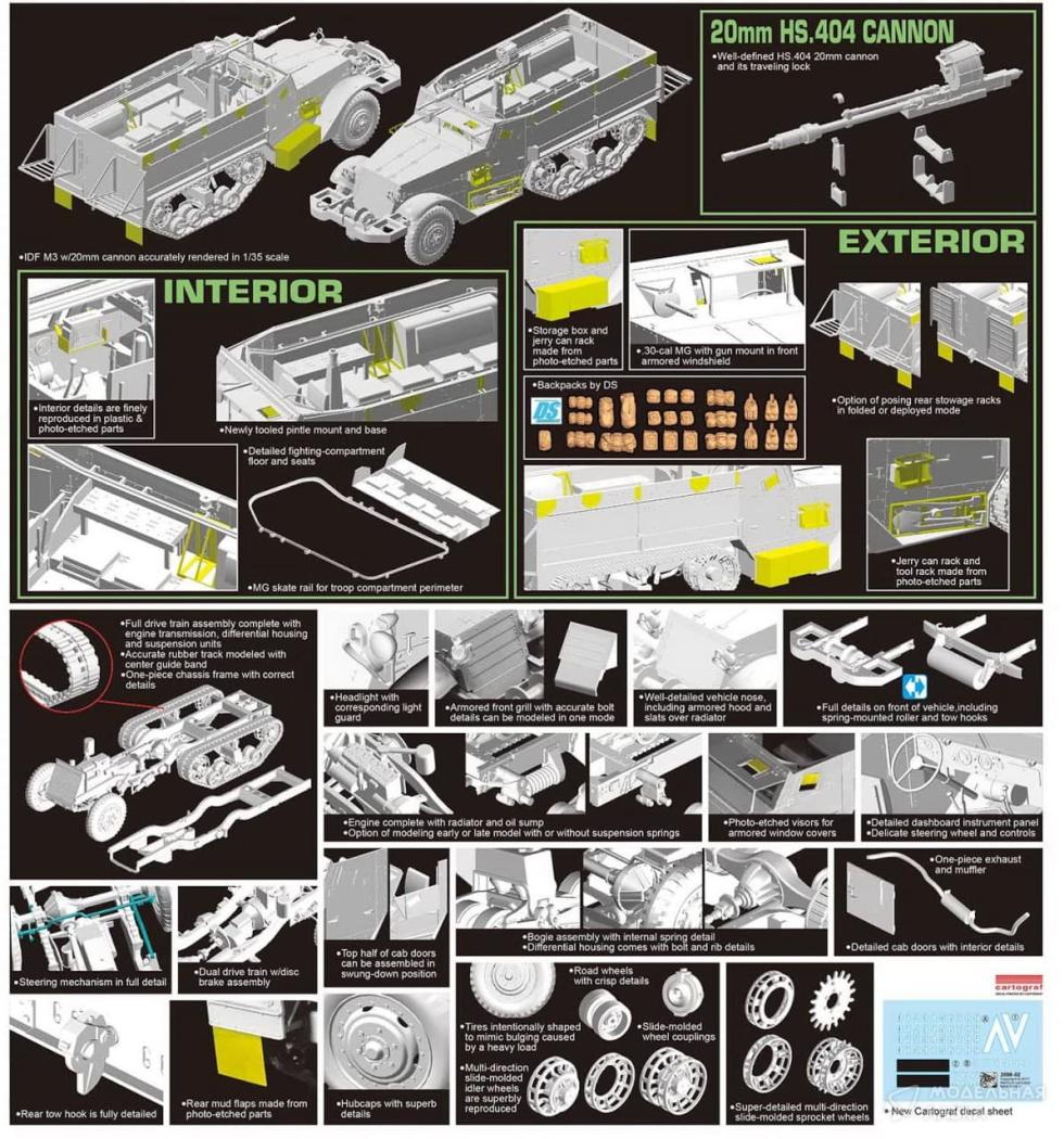- Сборная модель бронемашина IDF M3 HALFTRACK с 20мм пушкой HS.404