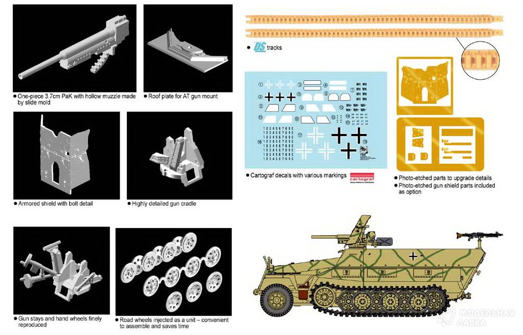 - Сборная модель бронетранспортер Sd.Kfz.251/10 Ausf.D w/3.7cm PaK 1/72