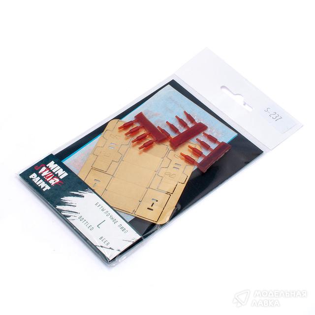 - плату фототравленой латуни, позволяющей собрать характерную возвратную картонную коробку на 24 бутылки и две картонные упаковки на 6 бутылок каждая (сикс)