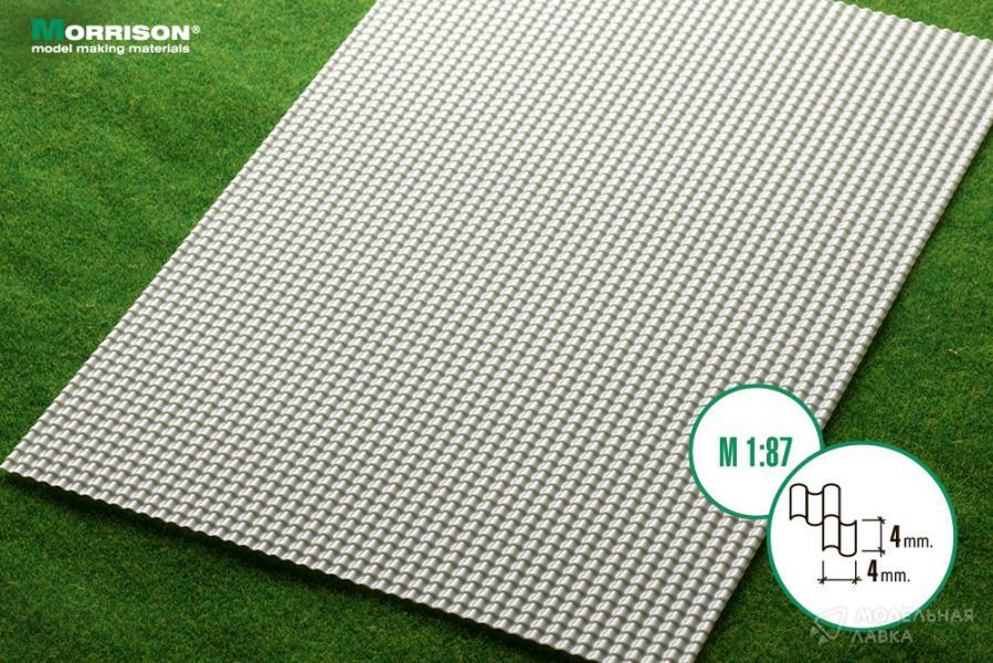 Объемная пластиковая текстура имитирующая кровельное покрытие из керамической черепицы для железнодорожных макетов типоразмера HO (1/87).