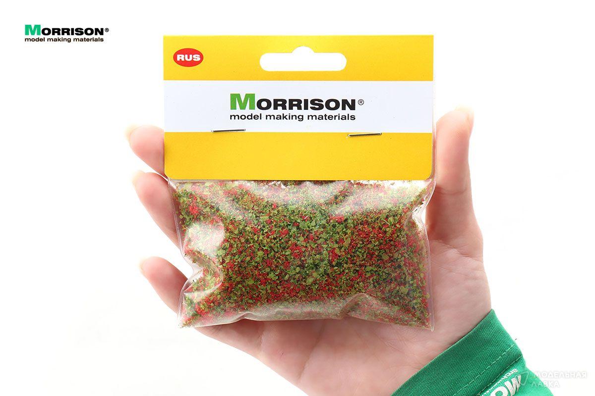 Яркая цветочная присыпка для создания цветущих лугов и полян на летних макетах и диорамах. Тёплый зеленый оттенок в сочетании с красными вкраплениями реалистично имитирует цветочный покров.