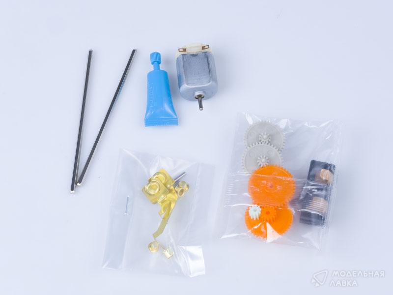 Модель автомобиля в масштабе 1/32 с электромоторчиком. Собирается без клея, на защелках. При сборке детям до 10 лет необходима помощь взрослых.