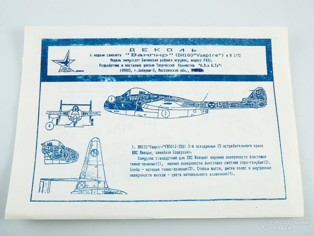 - Декаль для самолета DH-100 "Vampire"