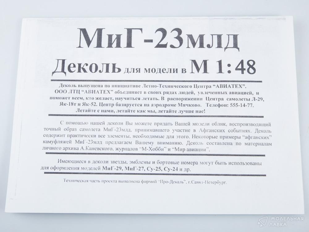 - Декаль для самолета МиГ-23МЛД