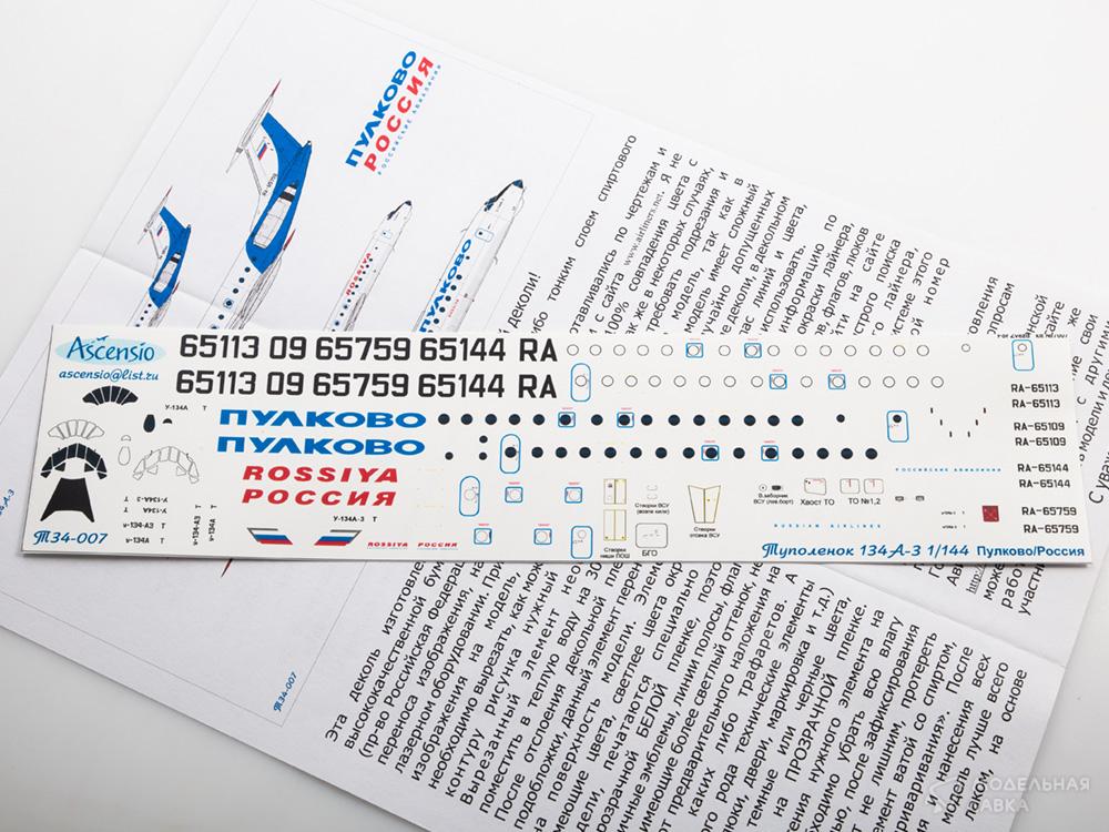 - Декаль для самолета Туполев Tu-134A-3 Аэрофлот Российские Авиалинии
