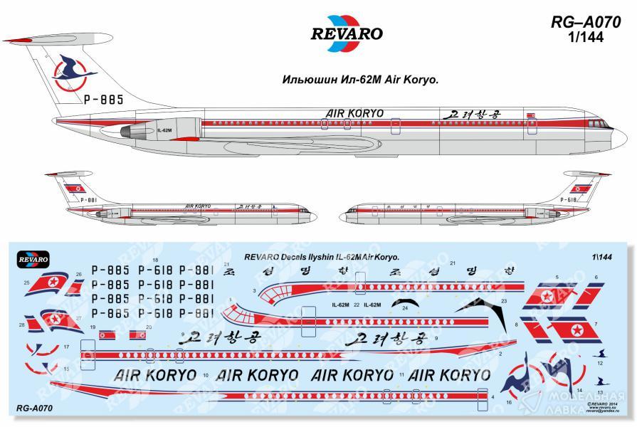 Декаль на Ил-62М северокорейской авиакомпании Air Koryo, борта P-881 и P-885, а так же правительственный борт P-618.