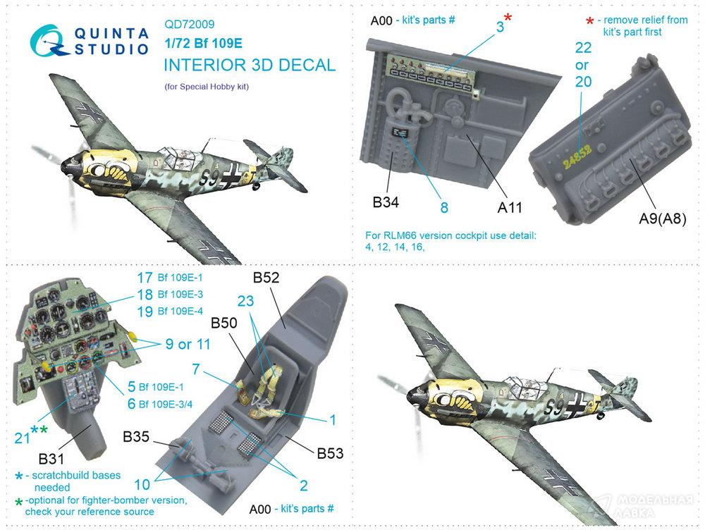 - Декаль интерьера кабины Bf 109E (Special Hobby)