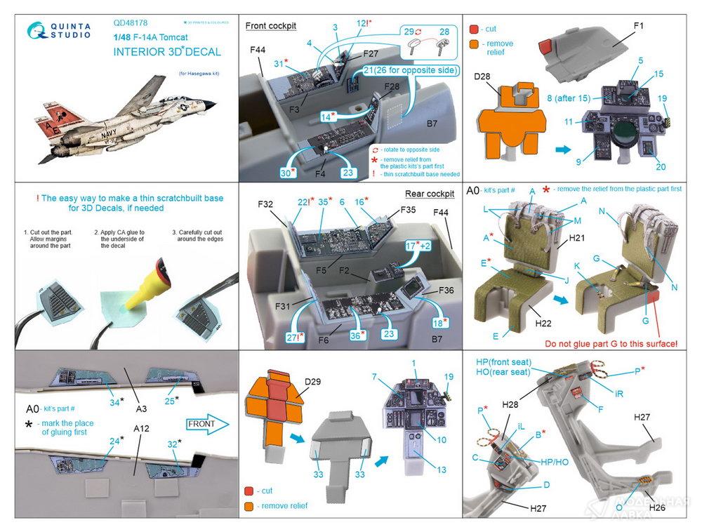 - Декаль интерьера кабины F-14A (для модели Hasegawa)
